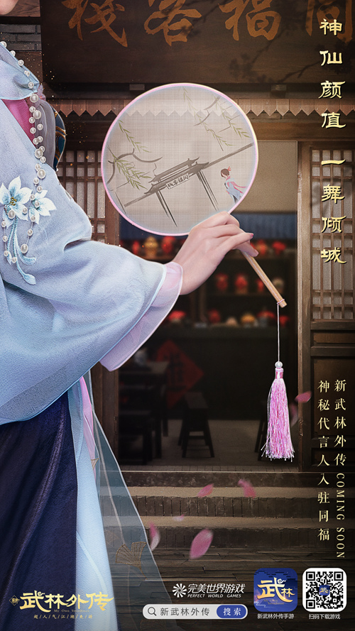神仙颜值,一舞倾城! 神秘代言人线索尽在于此,她便是画扇中的那位身姿绰约的佳人,花容呼之欲出,即将走进同福客栈。据悉,新《武林外传手游》代言人实力演技、神仙颜值、人气口碑面面具备,更是直男圈公认的女神。她的到来,必然搅动这片江湖,全新武林故事呈现,精彩再续!
