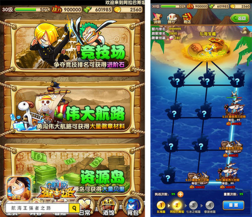 众所周知,在航海王动漫中,完成伟大航路找到ONE PIECE是所有海盗们的终极目标,当然还有打败各路海上高手,成为海盗王。那么如何才能挑战伟大航路上的各路高手?在《航海王强者之路》周年新版中,游戏为大家开启了全新跨服玩法“伟大航路”,跨服挑战更多海上高手,不断历练成长,成为扬名新世界的海盗。